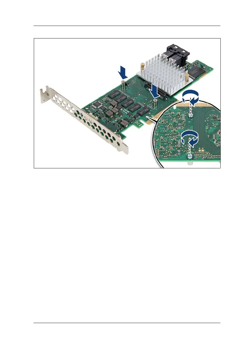 Ê Fit the two spacer bolts on the SAS RAID controller and secure each with a