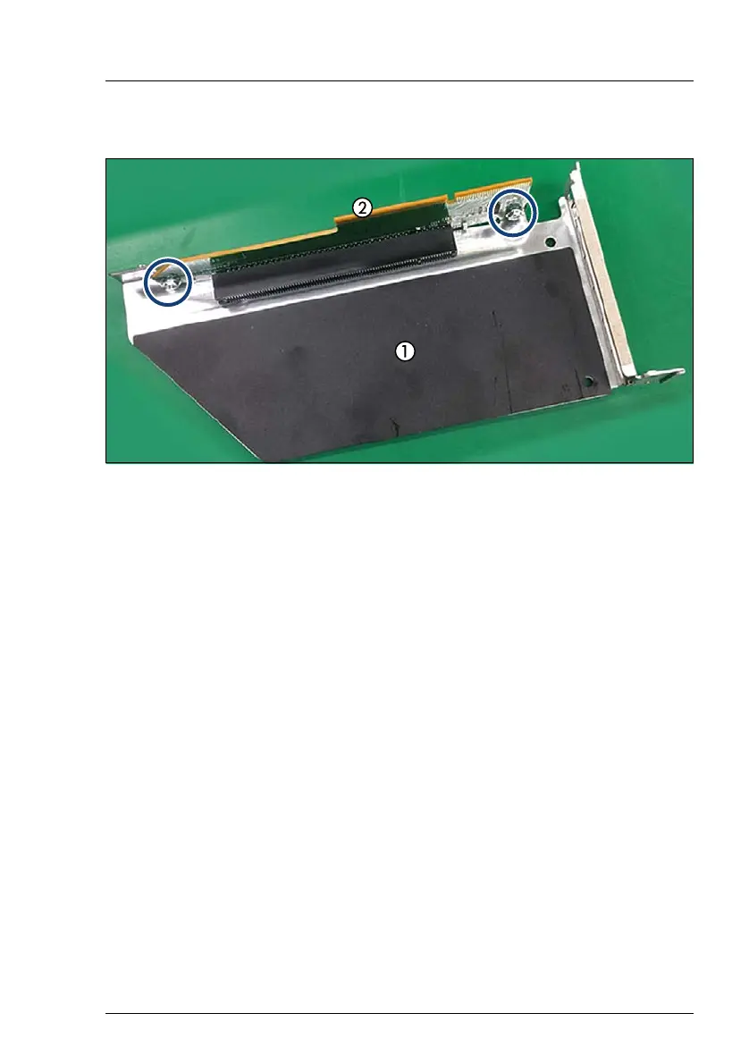 The riser module consists of the riser metal bracket (1) and the riser card (2).