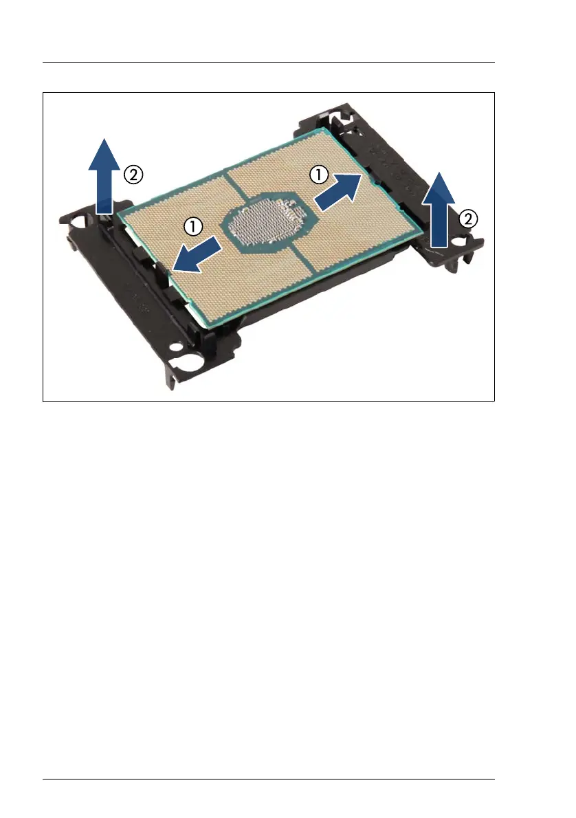 Ê Press the two noses in the direction of the arrows (1) and remove the CPU