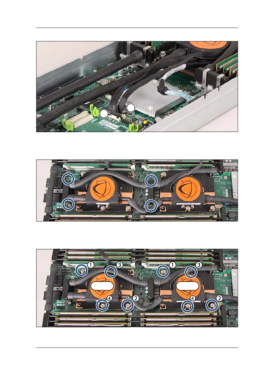 Ê Remove the screws from the VRM heat sinks (see circles).