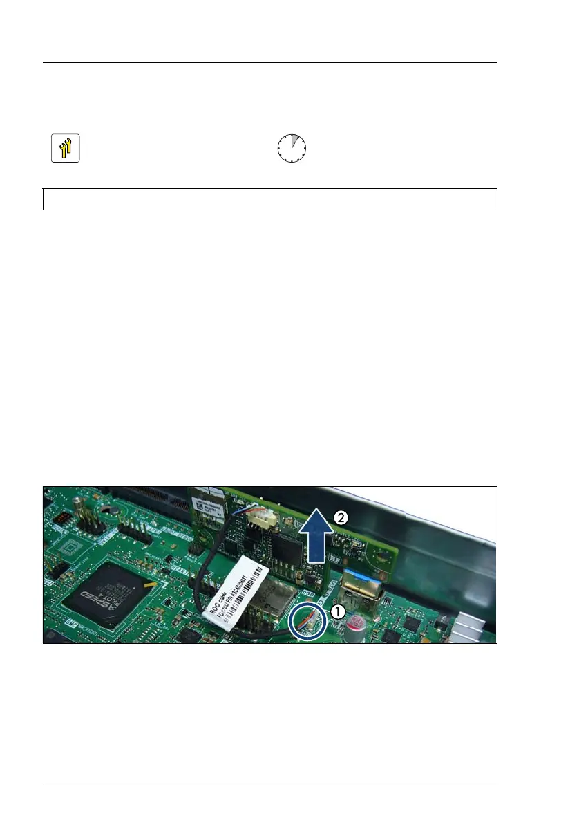 Ê Disconnect the cable from the connector "ROC" on the system board (1).
