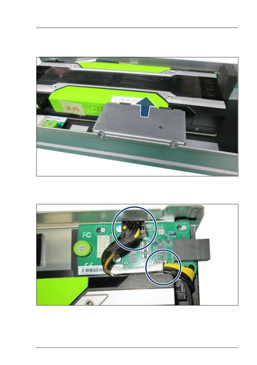 Figure 212: Disconnecting the GPGPU power cable and the I2C cable from the PIB