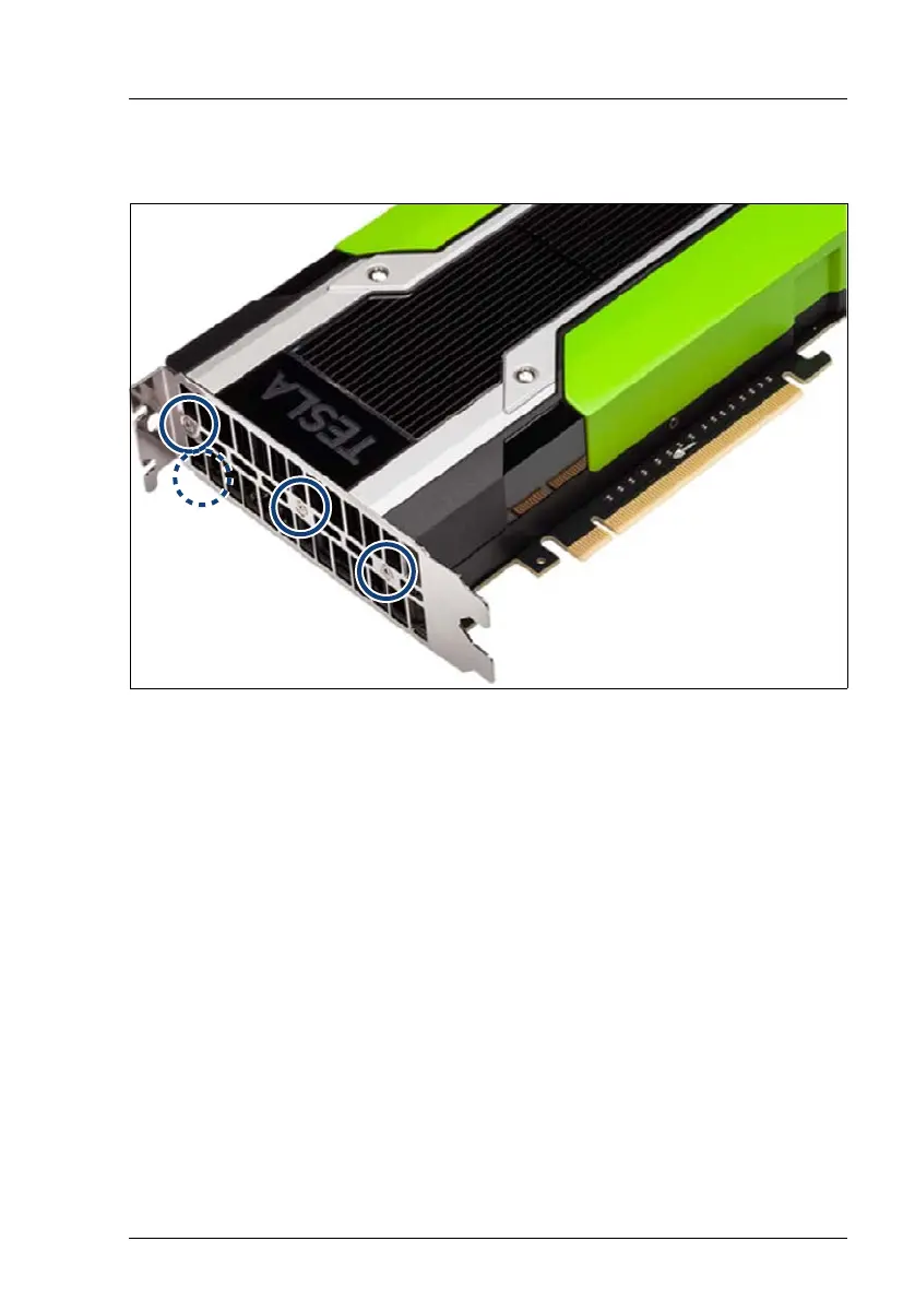 Ê If present, remove the bracket of the new GPGPU by removing three screws