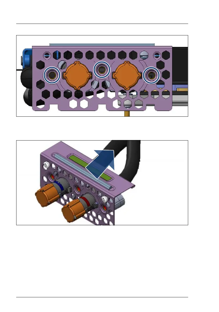 Ê Pull both flexible tubes through the holes of the LC bracket (see arrow).