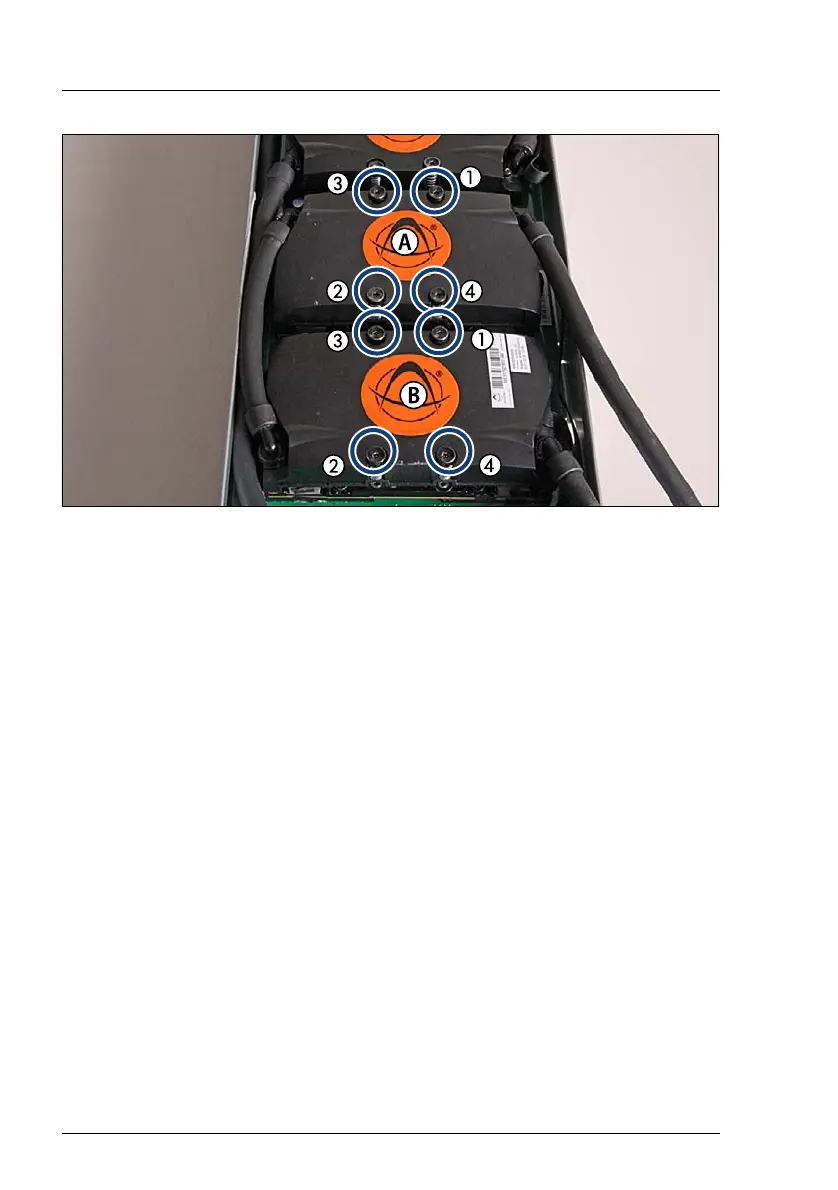 Figure 250: Removing LC heat sinks from SXM2 modules 3 (A) and 4 (B)