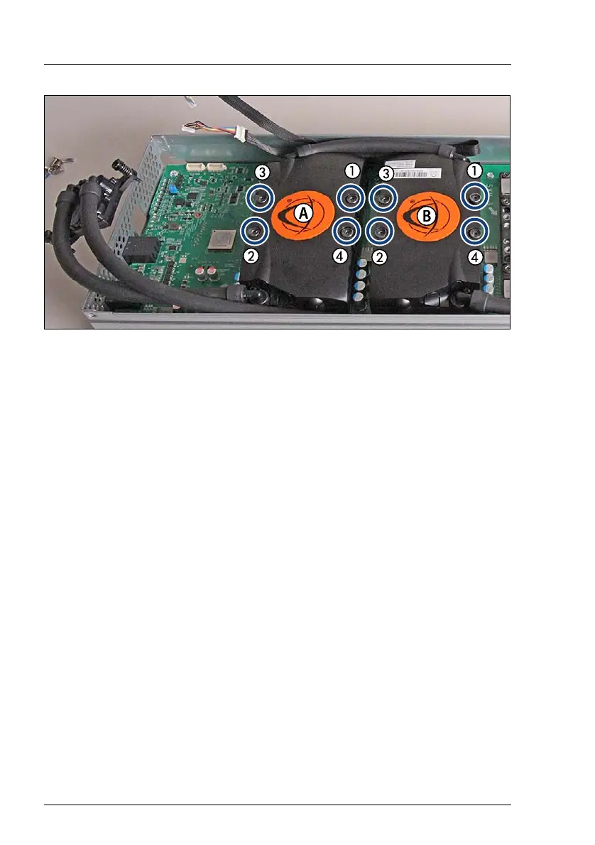 Figure 261: Removing LC heat sinks from SXM2 modules 1 (A) and 2 (B)