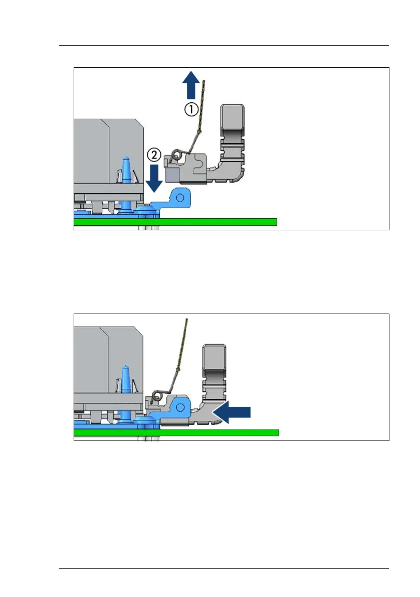 Figure 334: Placing the Omni-Path PHY card signal cable connector on the bolster
