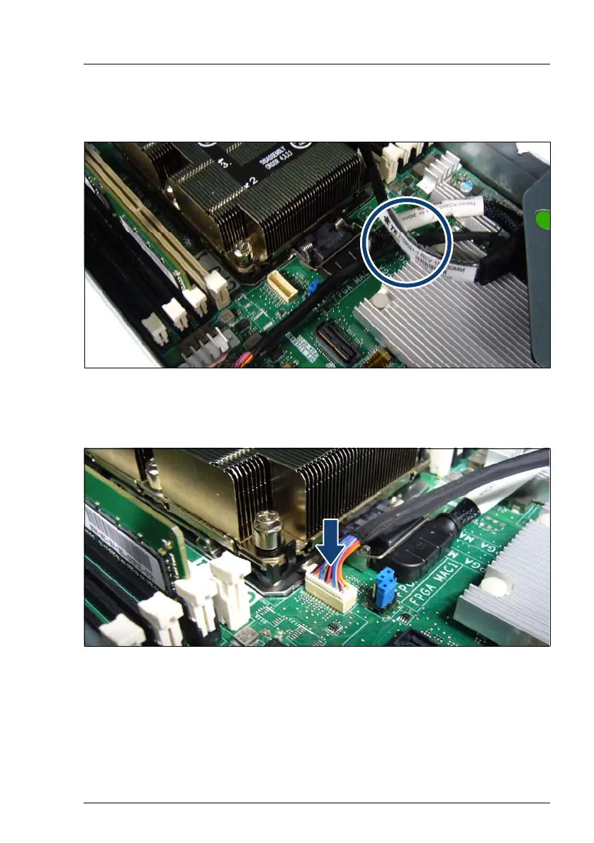 Figure 338: Connecting the Omni-Path PHY card sideband cable to the system board