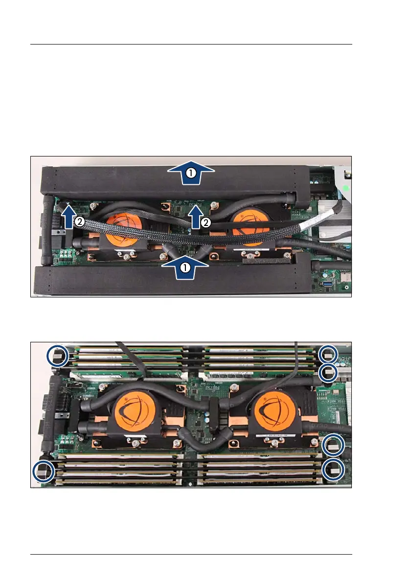 Figure 111: Removing the memory modules covers and VRM heat sink covers