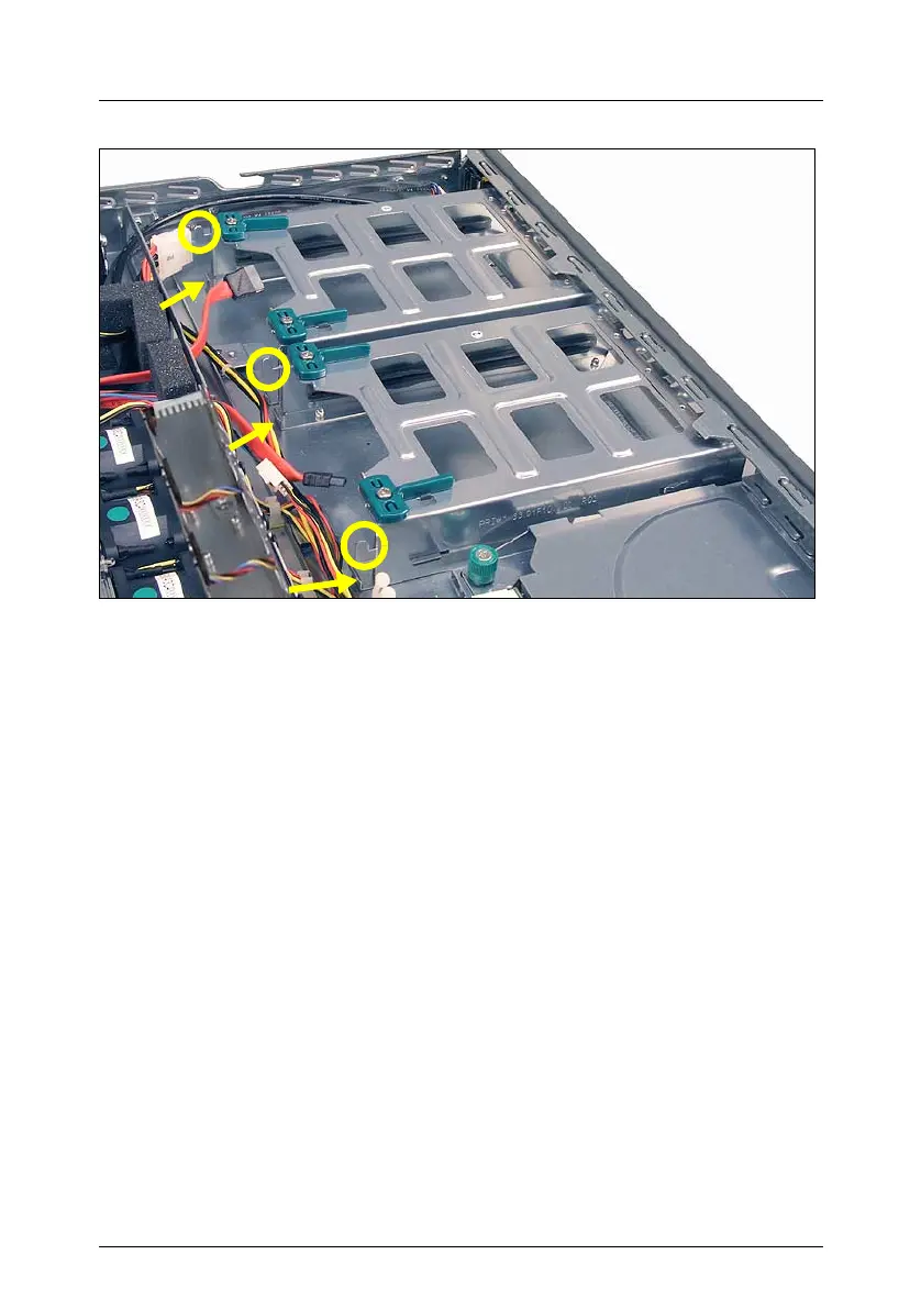 Ê Position the SAS/SATA backplane on the hooks (see circles). Make sure that