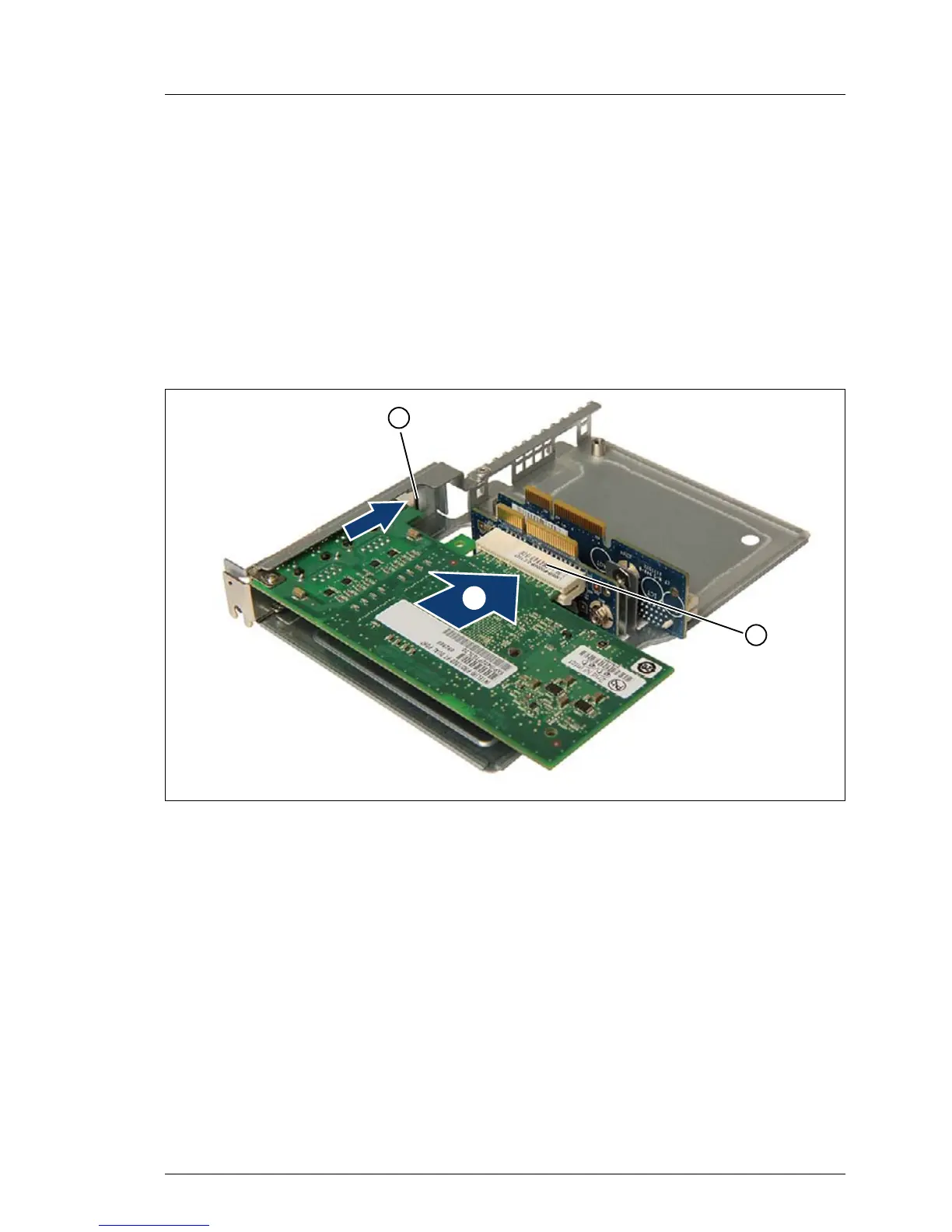 Ê Carefully press the expansion card into the riser card slot (A), until it clicks