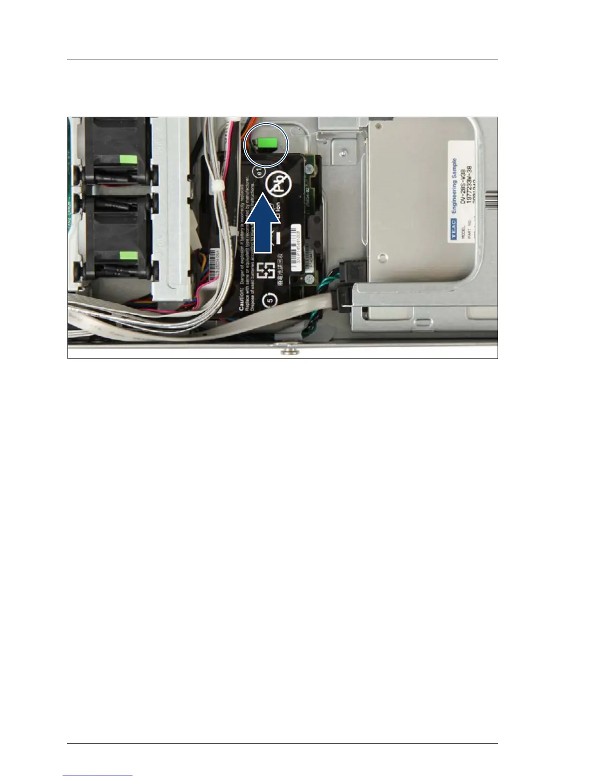 Ê Lift up the green locking handle on the BBU holder (see circle) while sliding