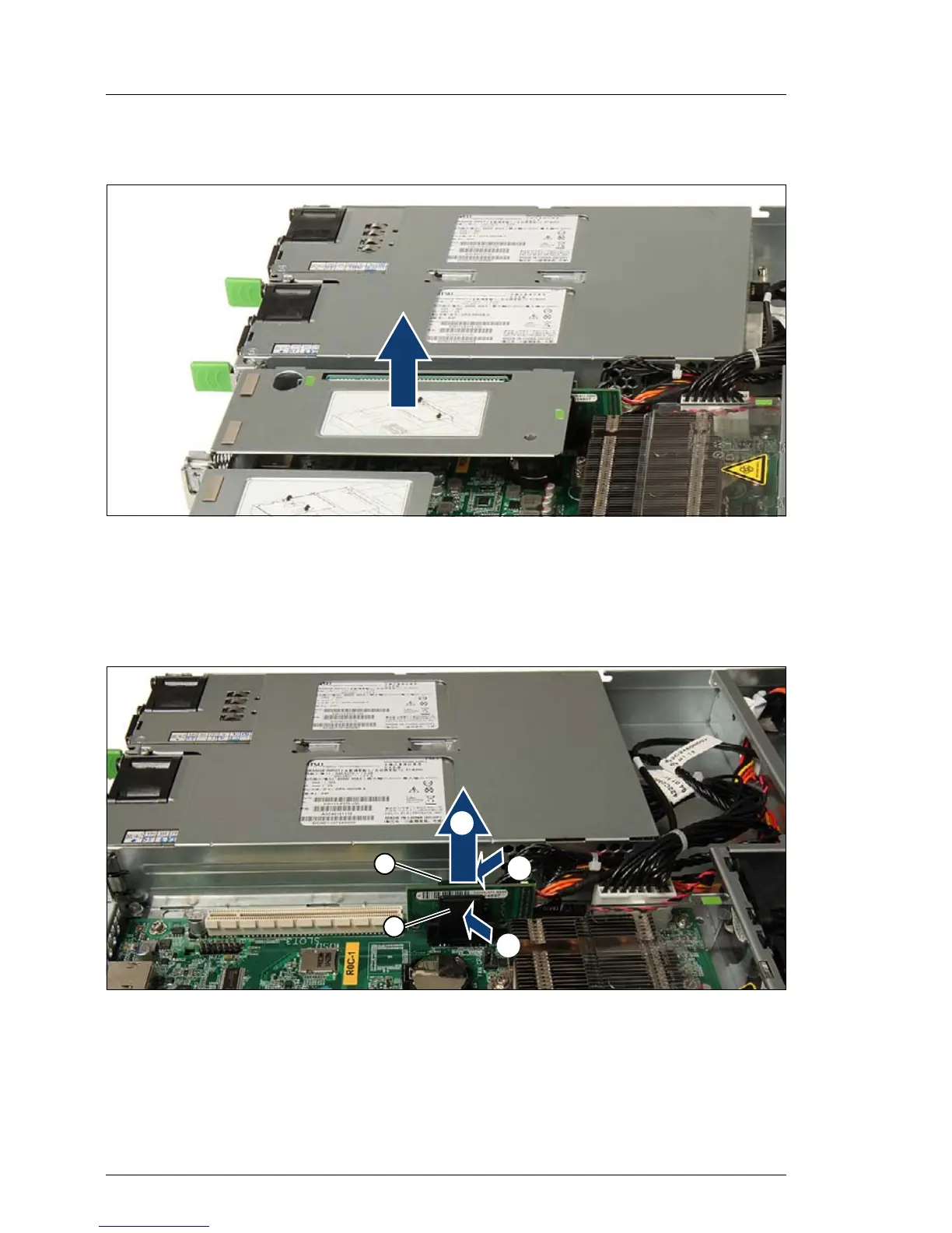 Ê Carefully pull the holder with the front LAN card out of its slot (2).
