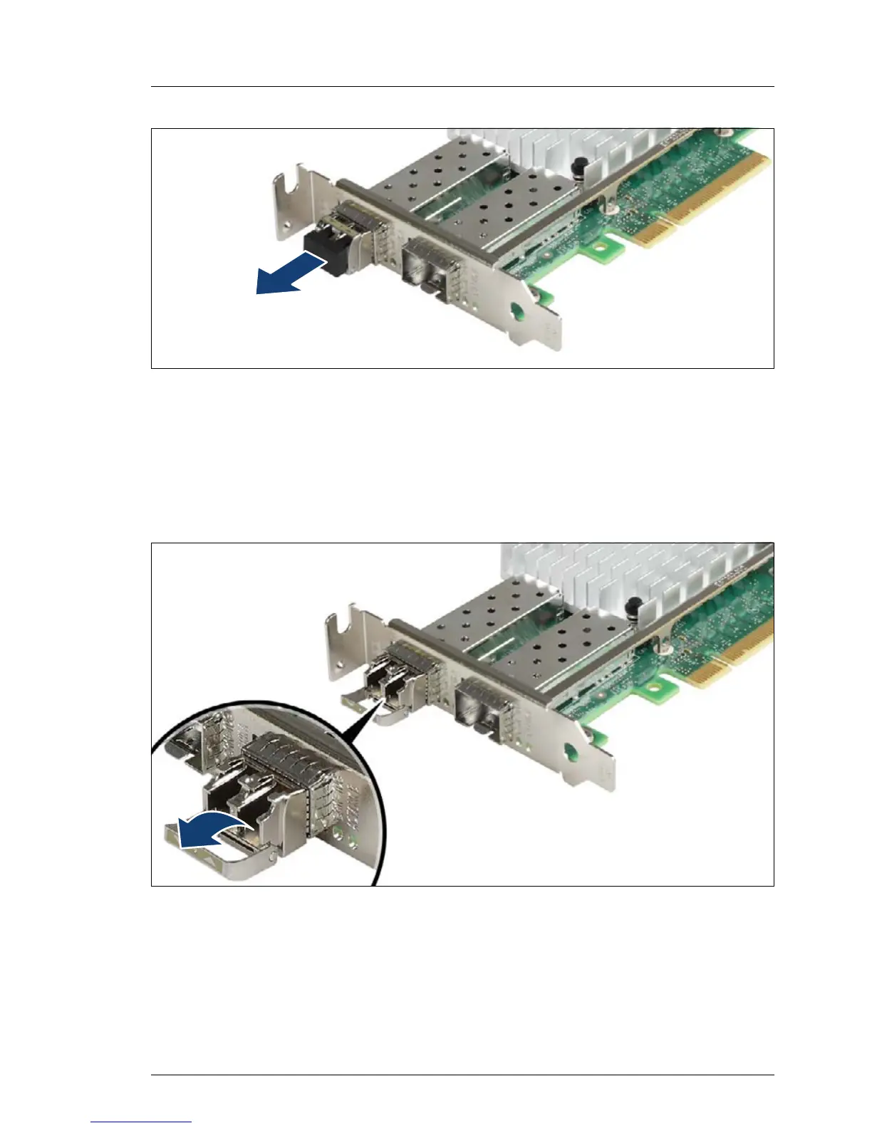 Ê Carefully unlatch and fold down the locking bail on the SFP+ transceiver
