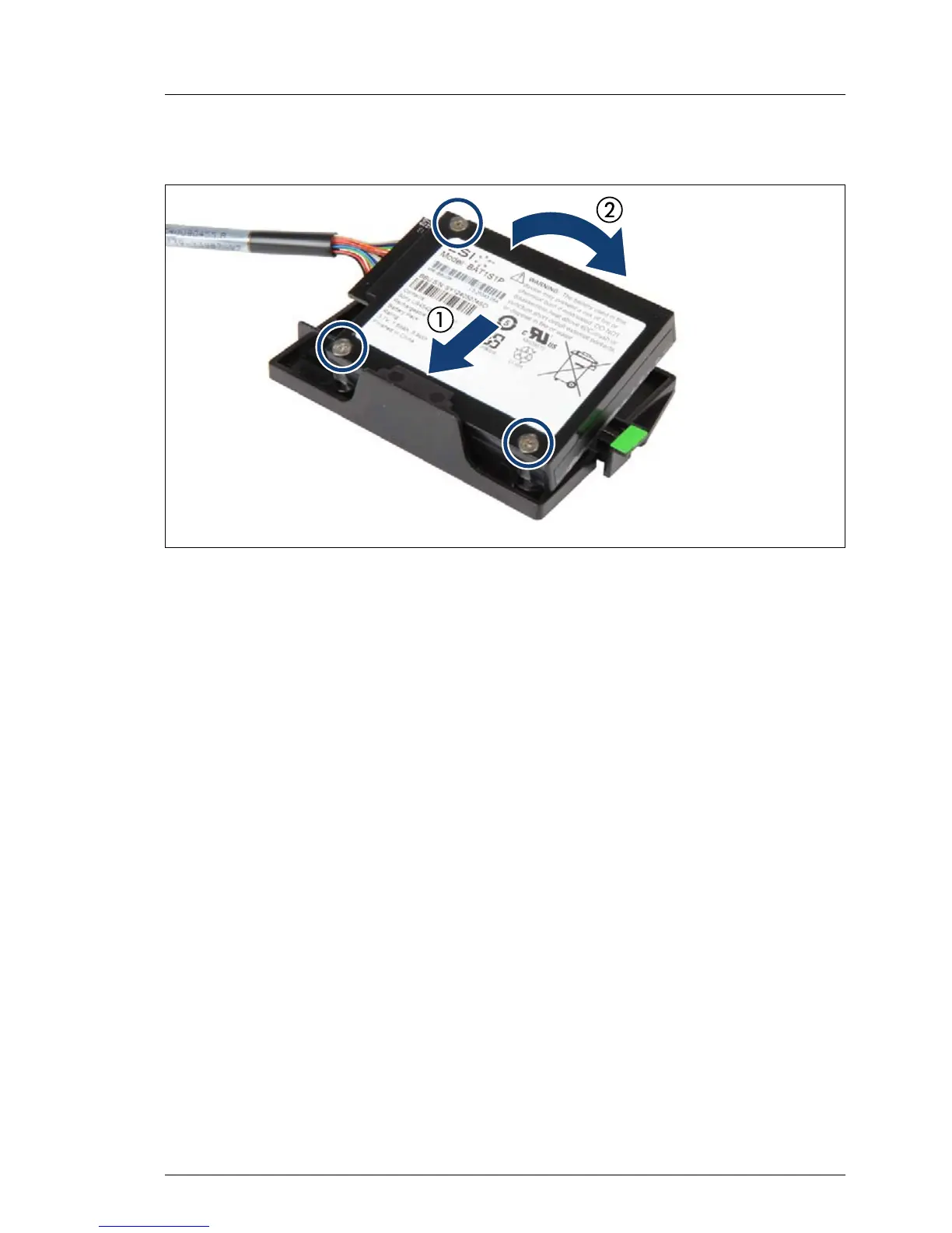 Ê At a slight angle, fit the BBU under the right retaining bracket on the holder