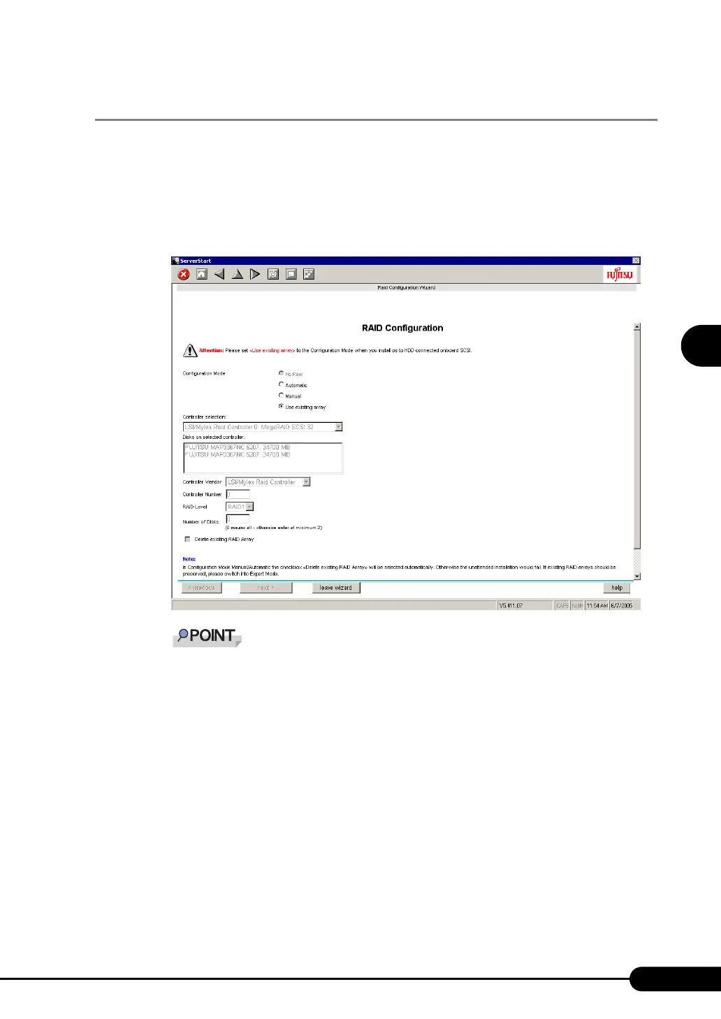 When you do not configure RAID, set the configuration mode to "Use existing array" before