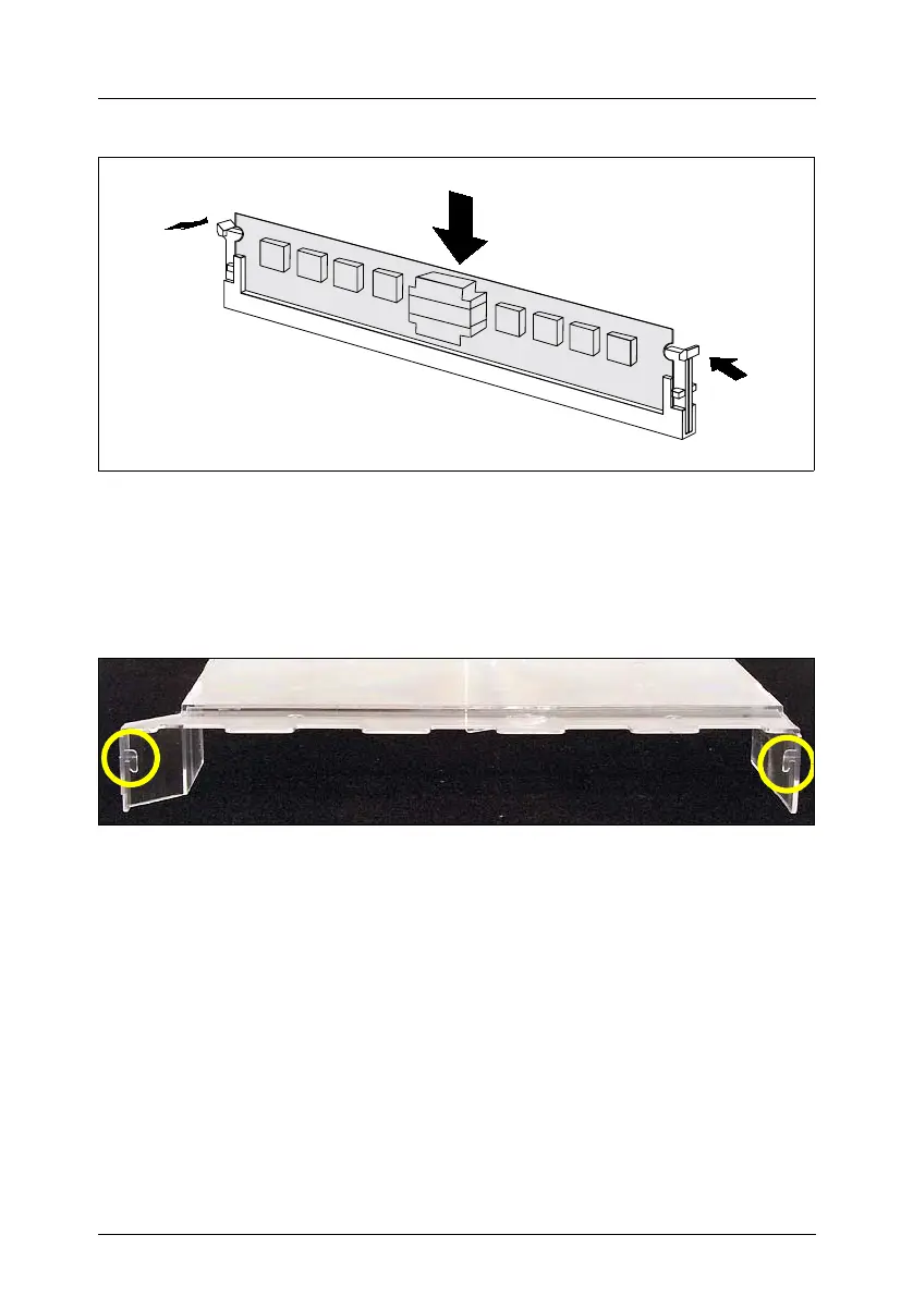 Ê Carefully press the memory module into the slot (1) until the ejector tabs on