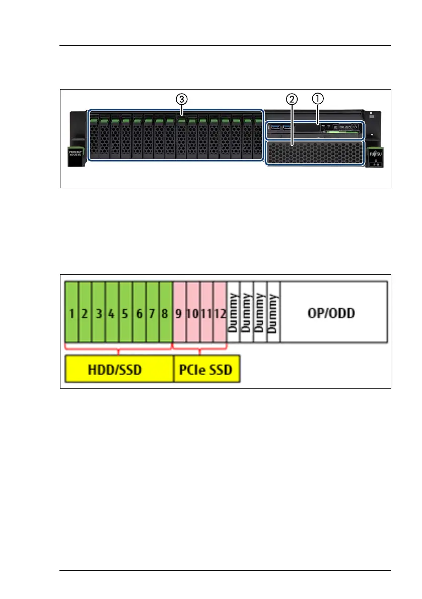 Figure 5: Front side 2.5-inch HDDs (up to 16 HDDs or up to 8 HDDs and 4 PCIe SSDs)