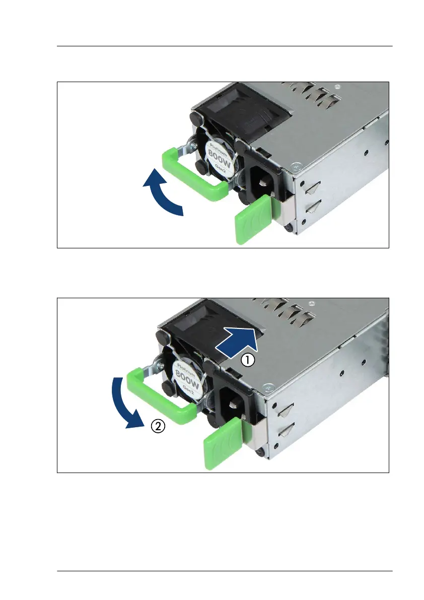 Push the handle of the PSU halfway upward in the direction of the arrow.