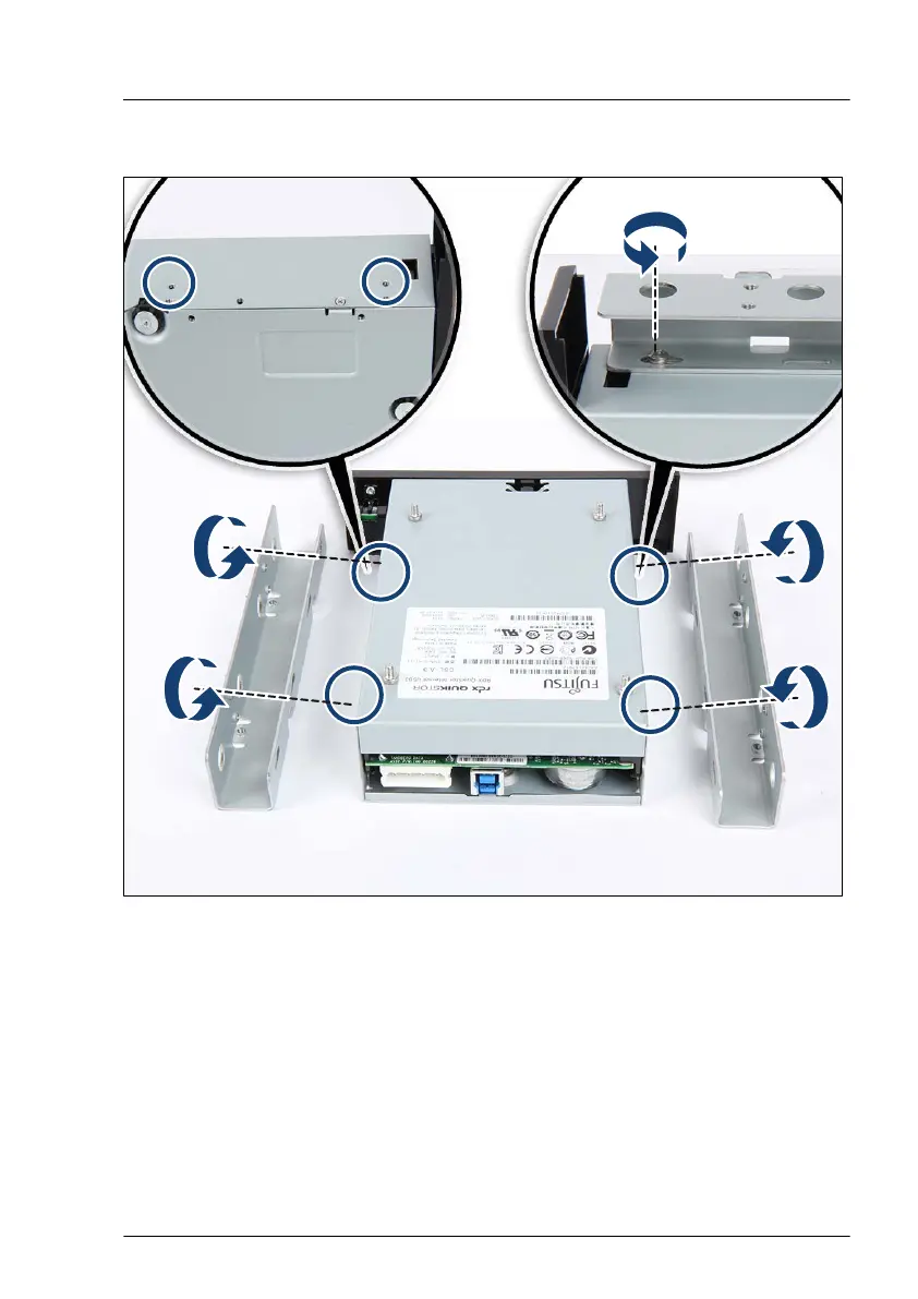 Fasten the rails with each two screws (fillister head screw, M3x 5