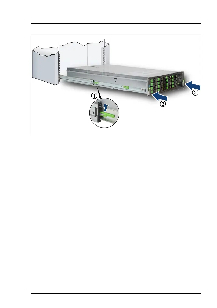 Ê Push the server as far as it will go into the rack (2) until the quick-release
