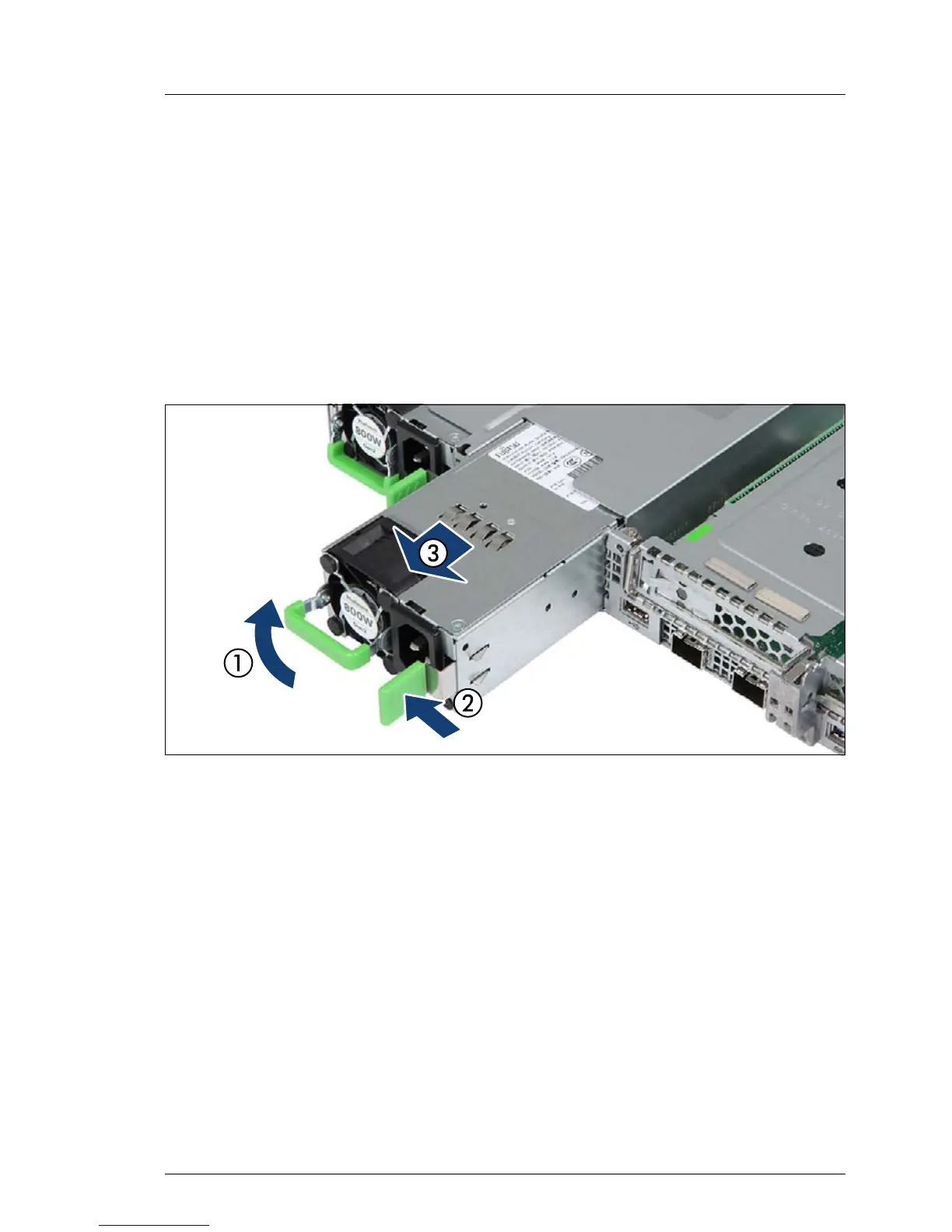 Figure 35: Unlocking and removing the power supply unit