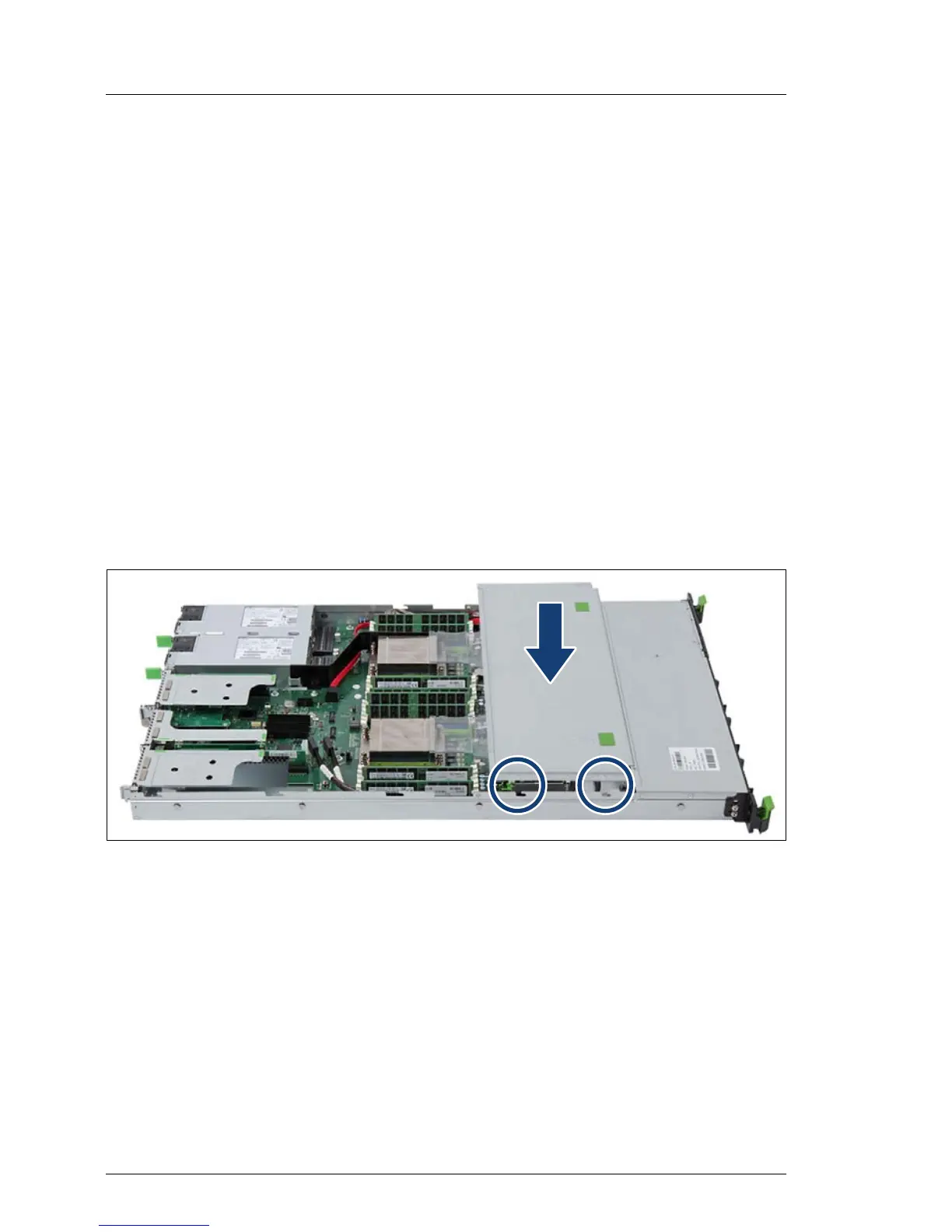 Ê Place the fan cover on the server. Notice the recesses (see circles).