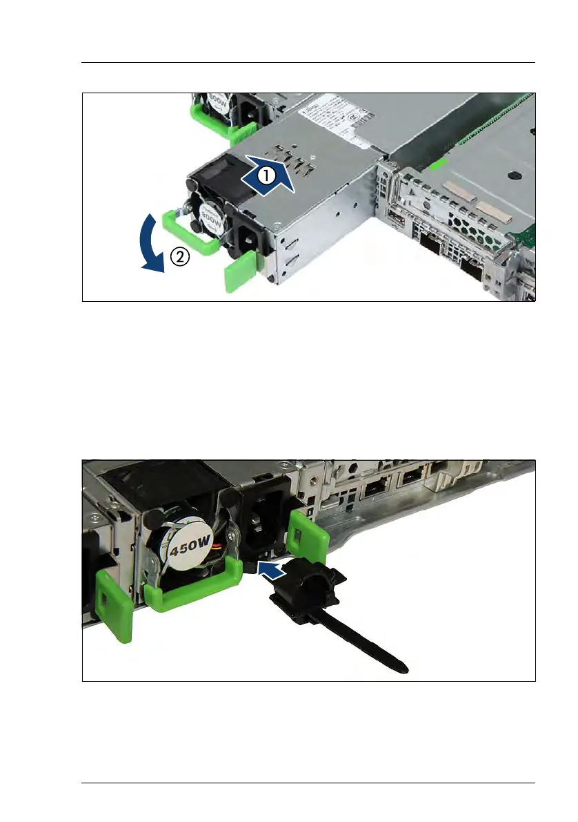 Ê Only for AC PSU: push the cable tie into the corresponding hole until it clicks