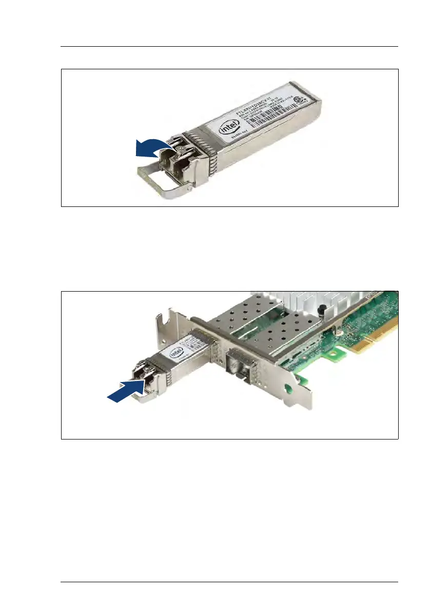 Figure 118: Inserting the SFP+ transceiver module