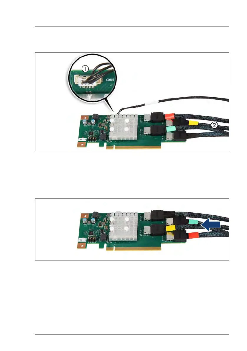 Ê Connect the color-coded Oculink cable (2) to the Retimer controller.
