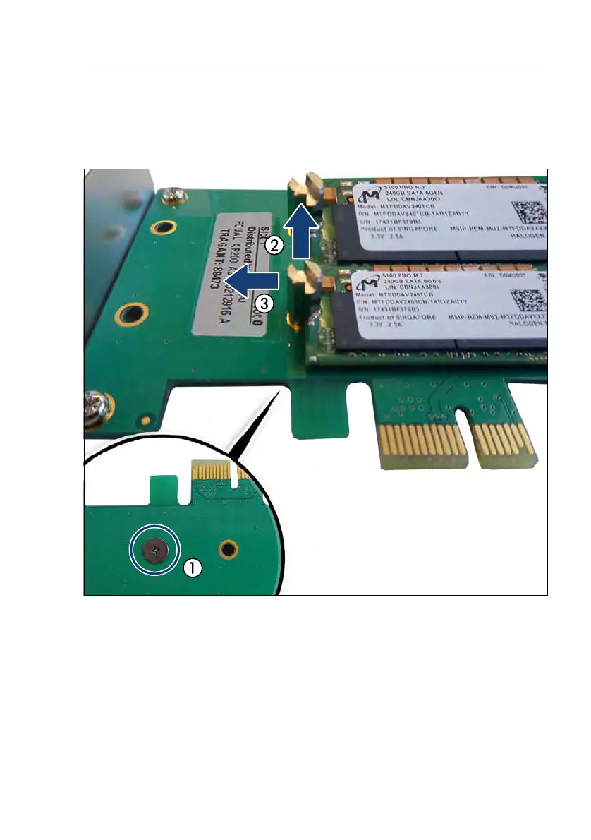 Ê Remove the screw (see circle) of the defective M.2 SSD at the bottom side