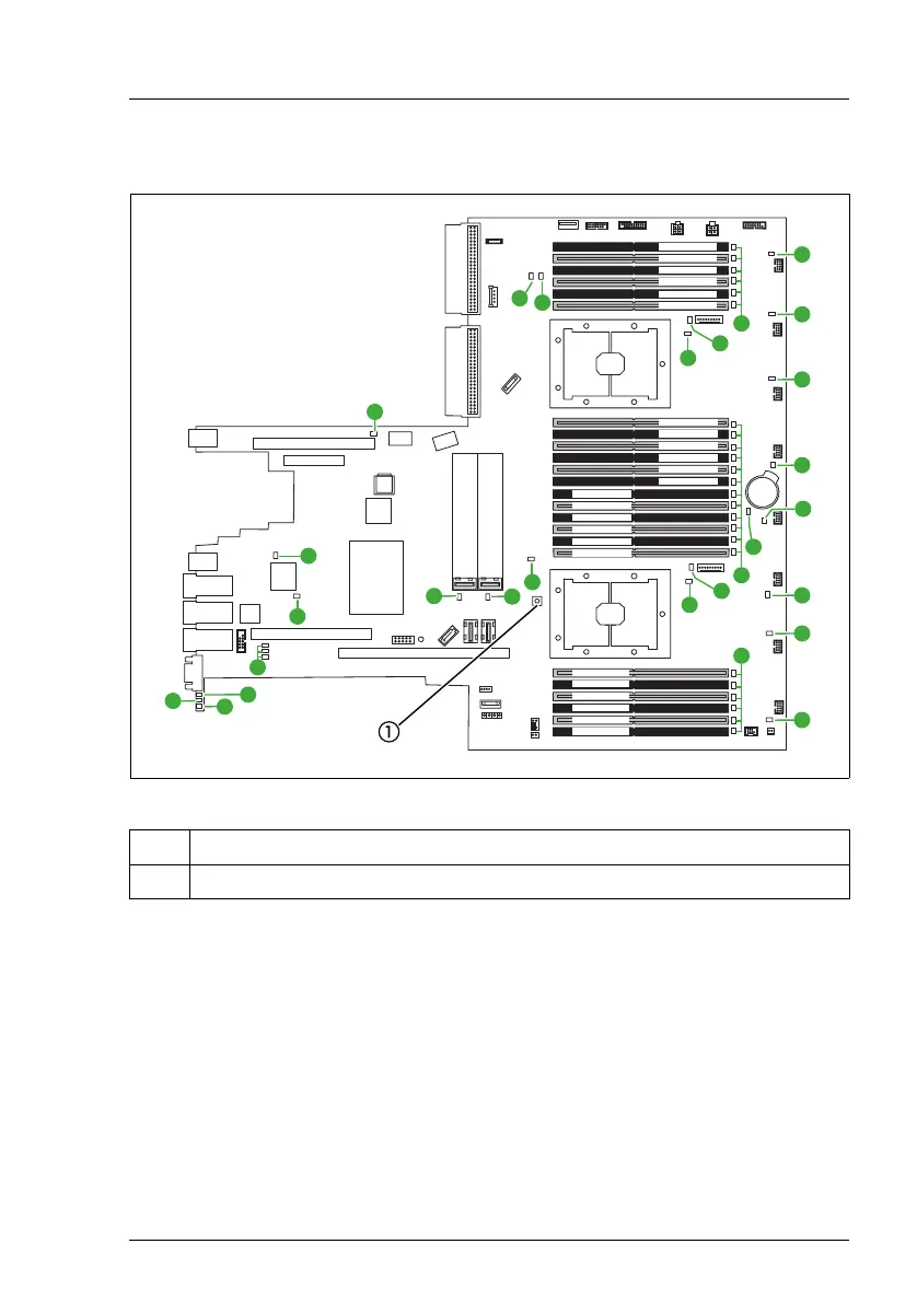 I LEDs A, B and C are visible from outside on the server rear. All other