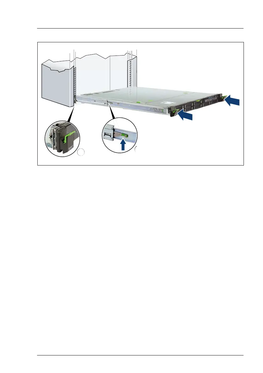 Figure 19: Sliding the server into the rack
