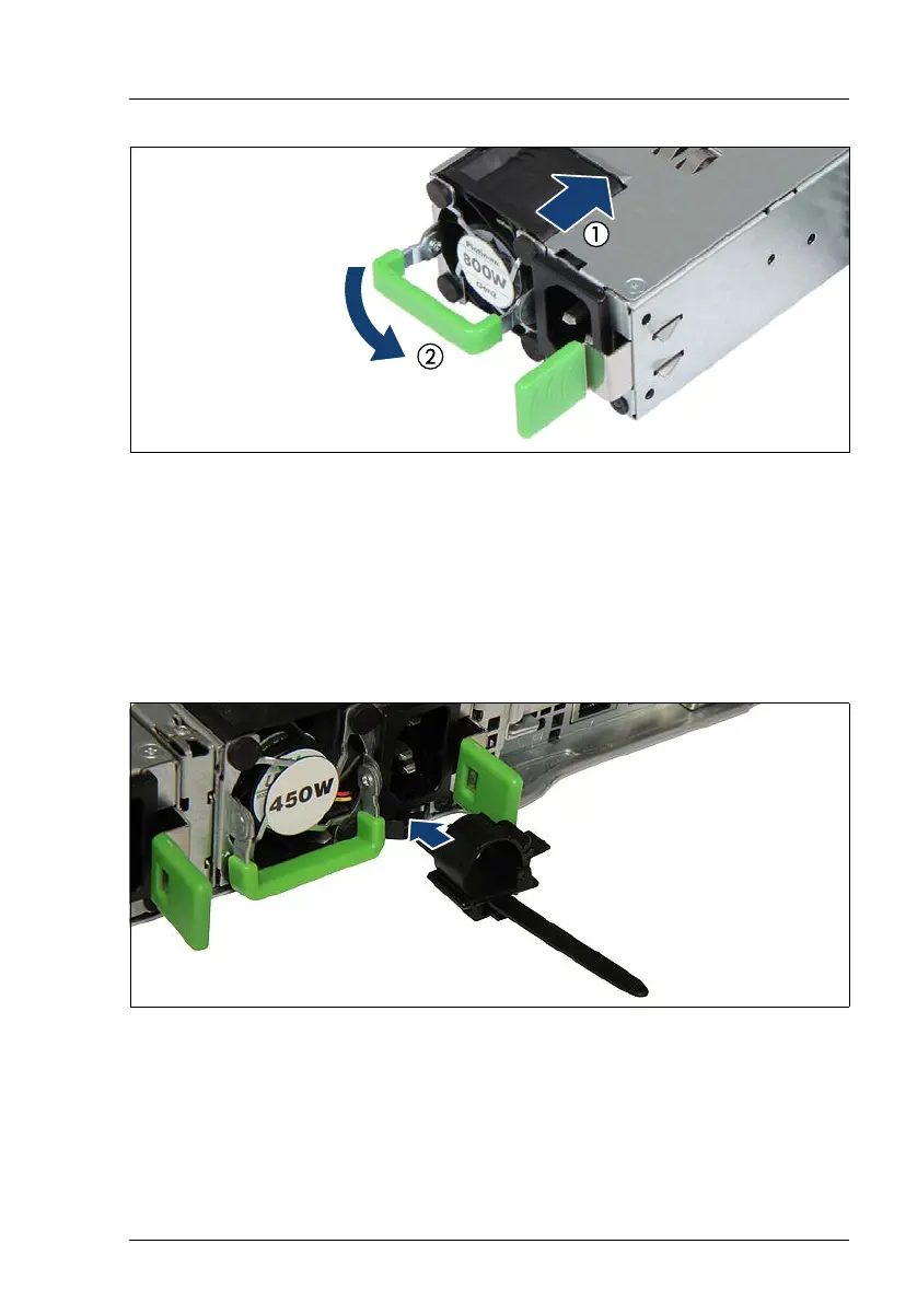 Ê Push the PSU into its bay (1) as far as it will go until the release latch snaps