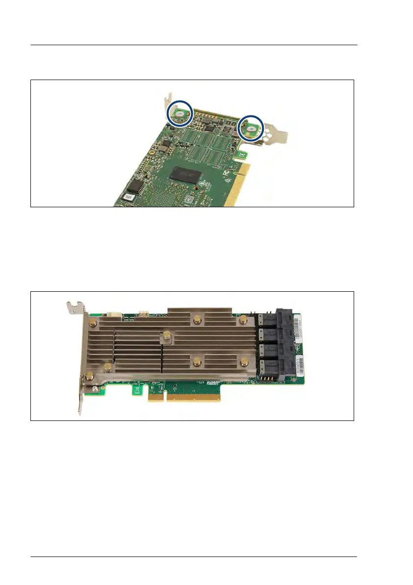 Secure the slot bracket to the expansion card with two screws (see circles).