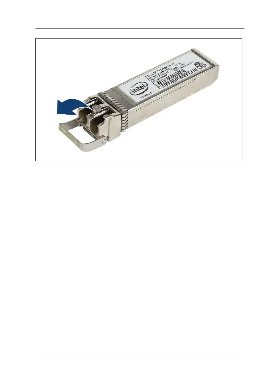 Carefully unlatch and fold down the locking bail on the SFP+ transceiver