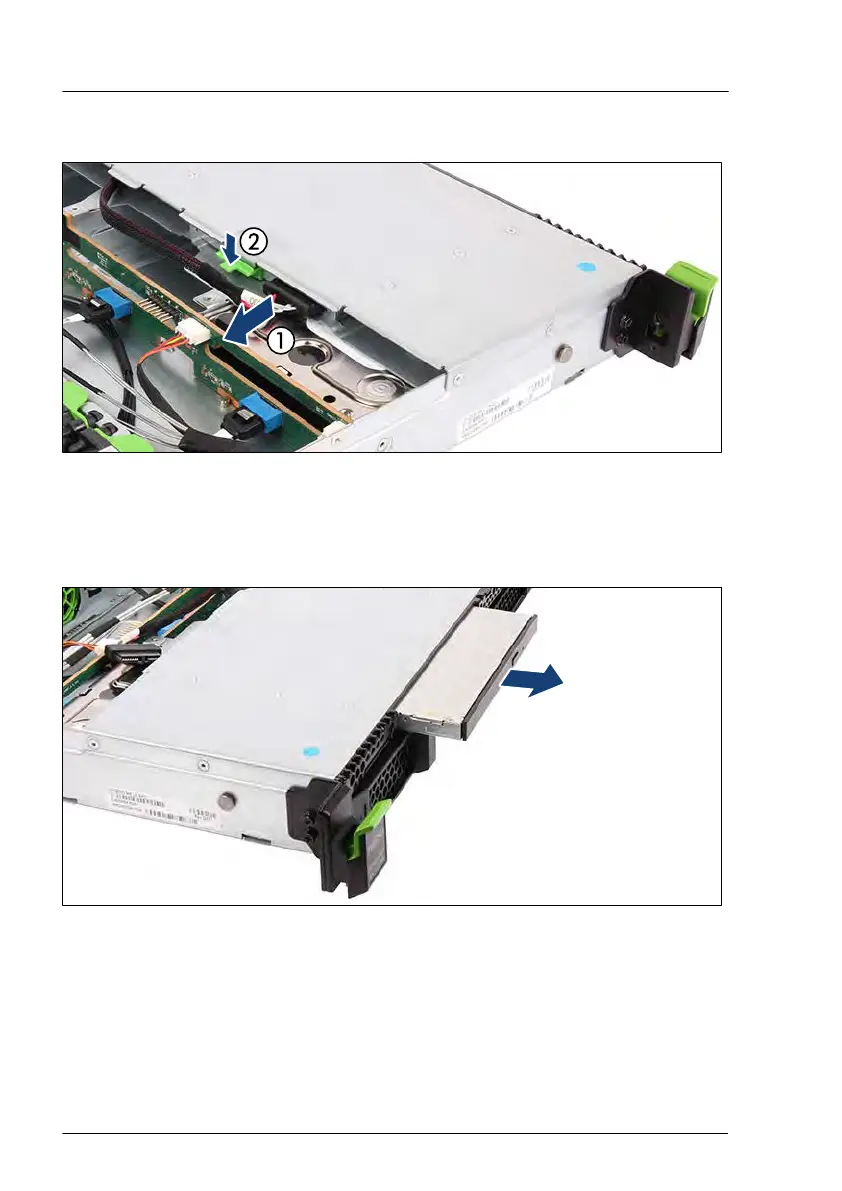Press the ODD latch in direction of the arrow until it disengages (2).