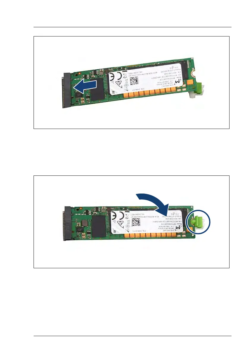 Push down the M.2 SSD until the M.2 SDD latch locks in (see circle).