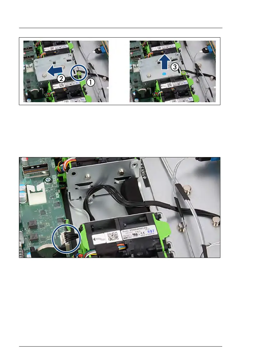 If applicable, disconnect the OOB cable from the system board (see circle).