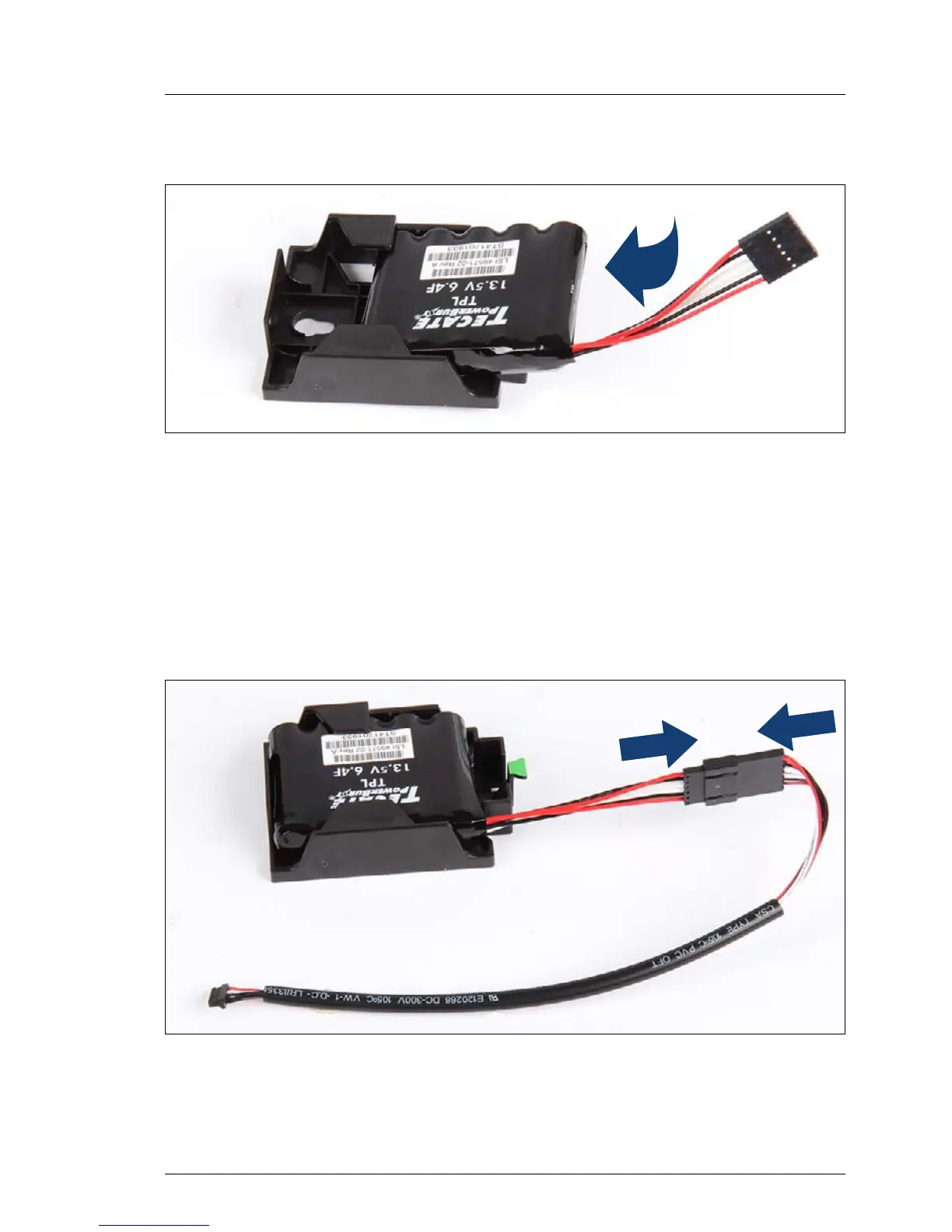 Ê At a slight angle, fit the FBU under both retaining brackets of the FBU holder
