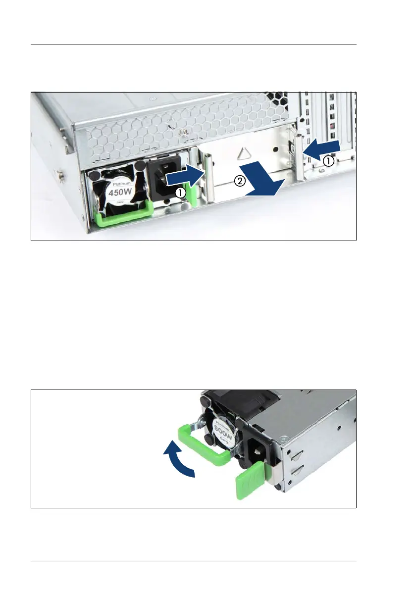 Ê Push the handle of the PSU halfway upward in the direction of the arrow.