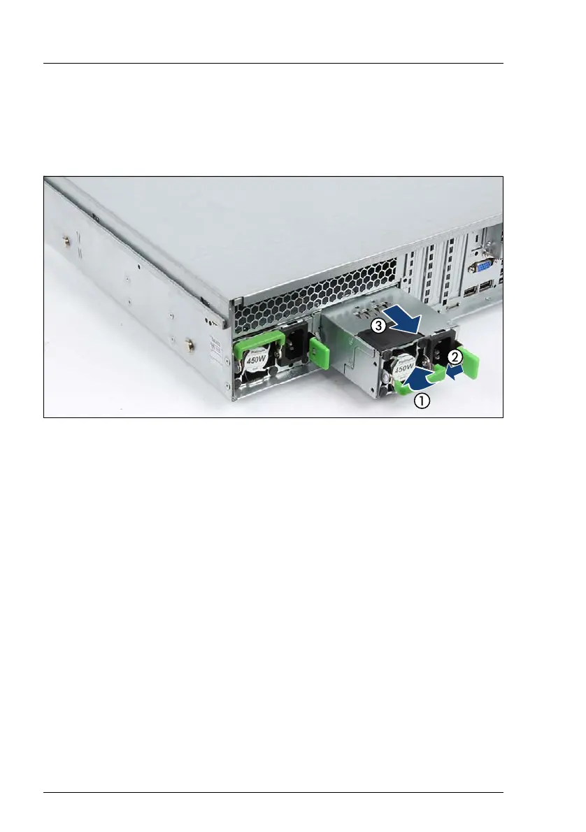 Ê Grip the handle and pull out the PSU in the direction of the arrow (3).