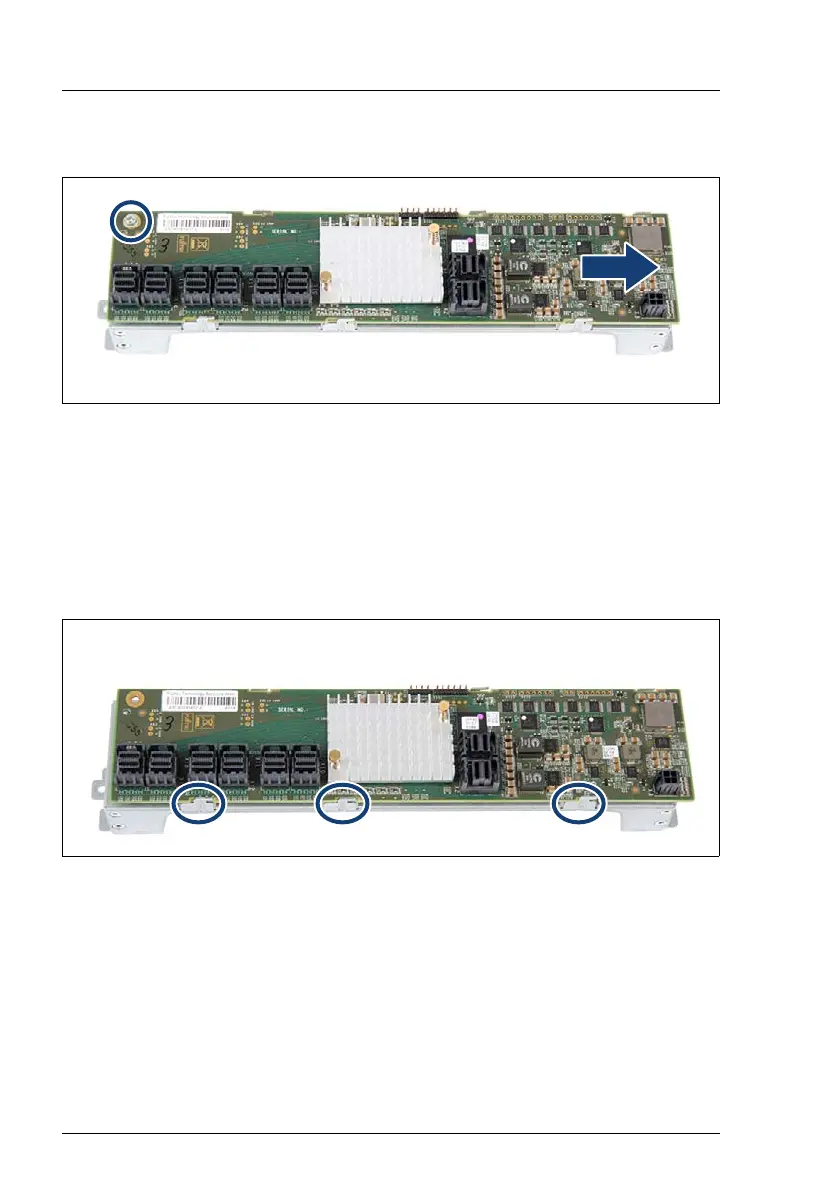 Ê Position the SAS expander board on the SAS expander holder (see circles).