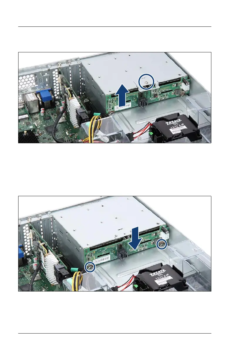 Ê Take the backplane out of the rear HDD cage (see arrow).
