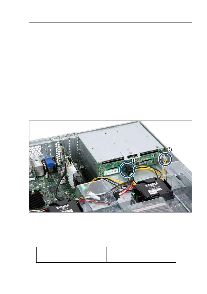 Ê Connect the power cable from backplane connector X10 (2) to system board