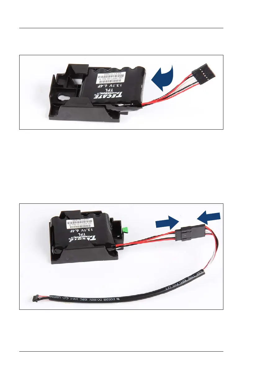 Ê At a slight angle, fit the FBU under both retaining brackets of the FBU holder