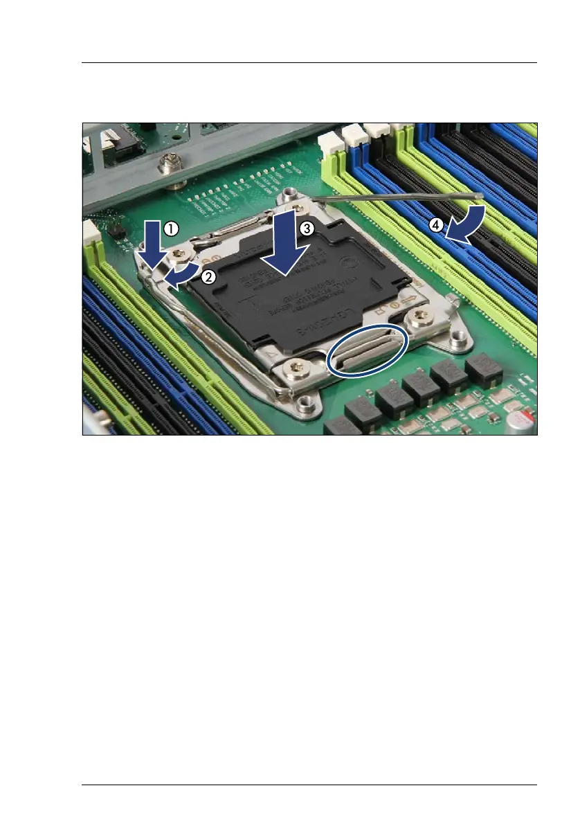 Ê Close the socket release lever 2 (1) and latch it under the load plate