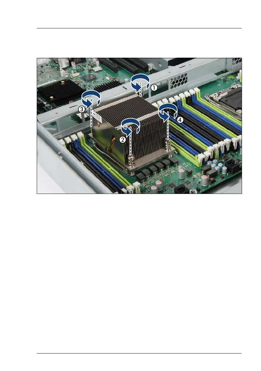 Ê Loosen the four captive screws on the heat sink in a crossover pattern (1-4).