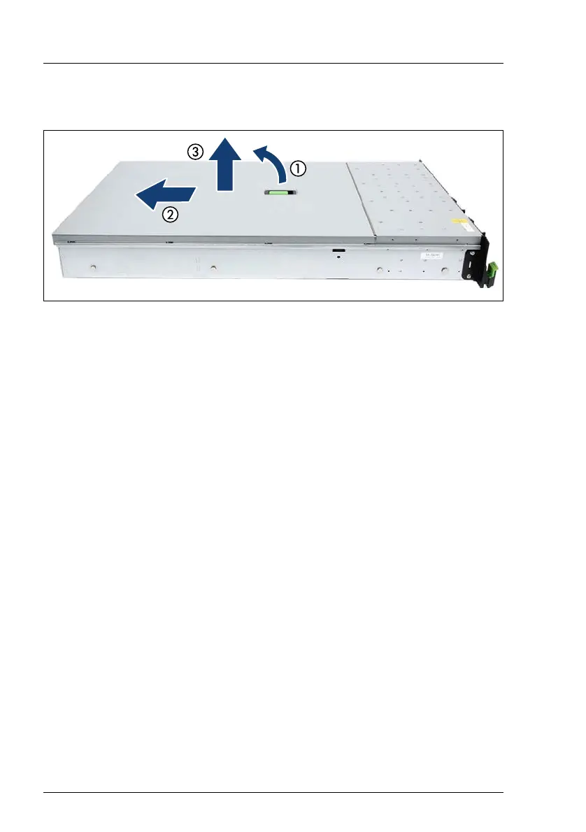 Ê Open the locking lever (1). This will slide the top cover back disengaging the
