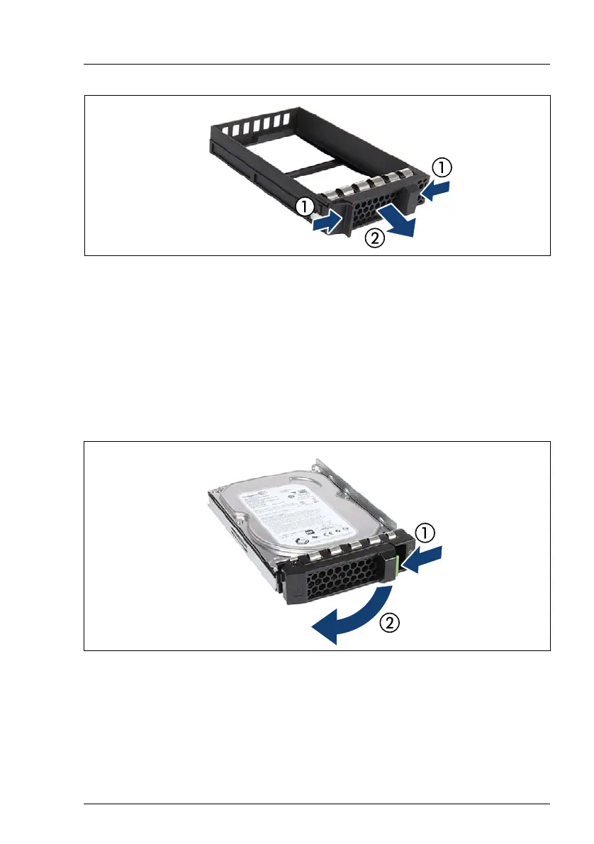 Ê Press both tabs together (1) and pull the dummy module out of its bay (2).